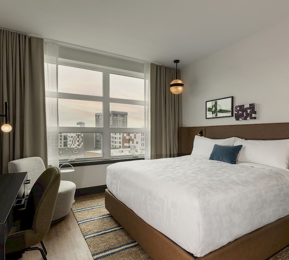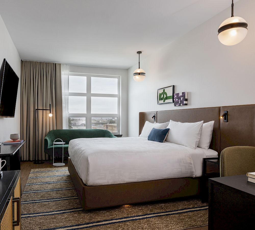Experience one of our 168 rooms or 10 premium suites, each well-appointed with chic décor and locally-sourced products. Premium vinyl plank wood flooring and woven designer area rugs gives the rooms a residential feel, while the luxurious bathrooms feature Cipollino marble-clad vanities, handcrafted ceramic wall tile, and Kohler fixtures.
