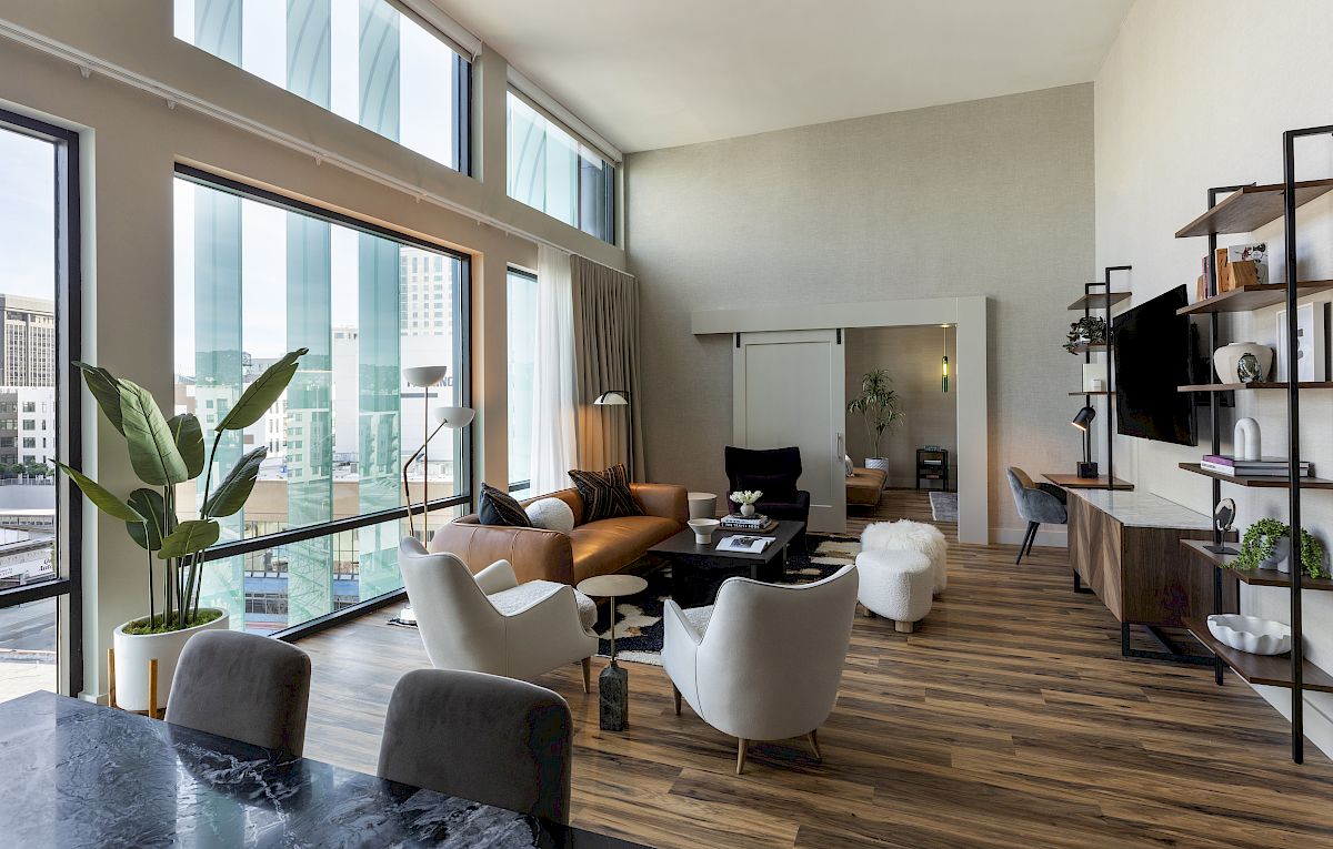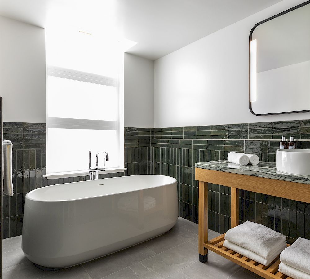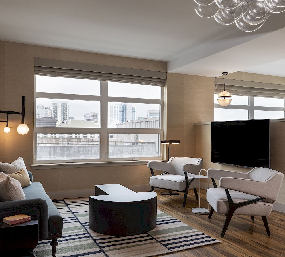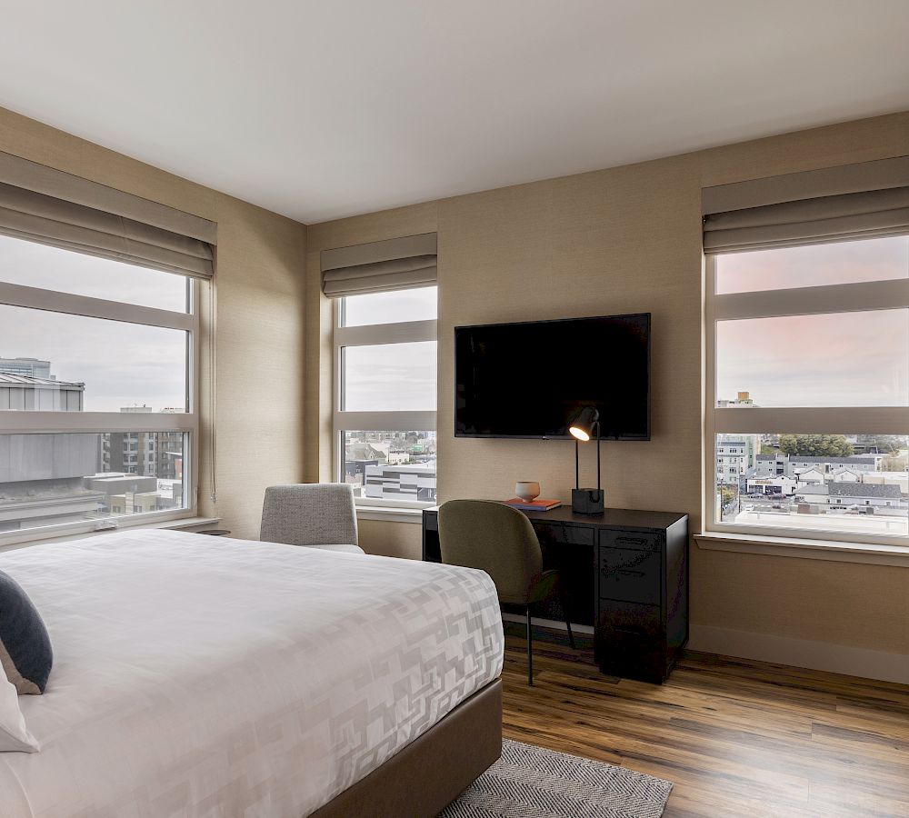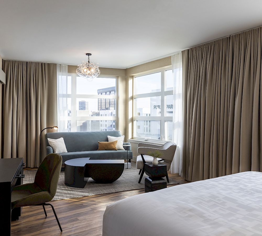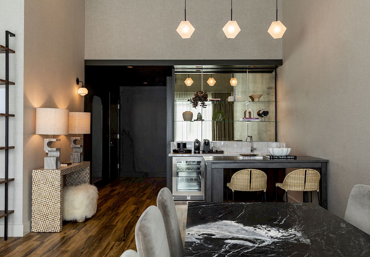 Upgrade your stay with one of our 10 premium suites, each well-appointed with chic décor and locally-sourced products. Premium vinyl plank wood flooring and woven designer area rugs gives the rooms a residential feel, while the luxurious bathrooms feature Cipollino marble-clad vanities, handcrafted ceramic wall tile, and Kohler fixtures.
